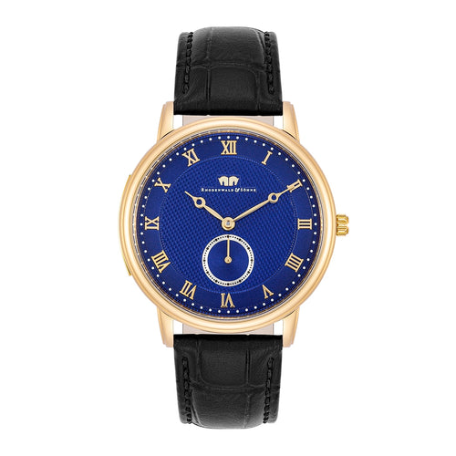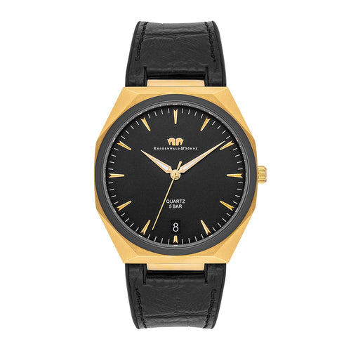 Herren Quarzuhr gelbgold Echtleder schwarz