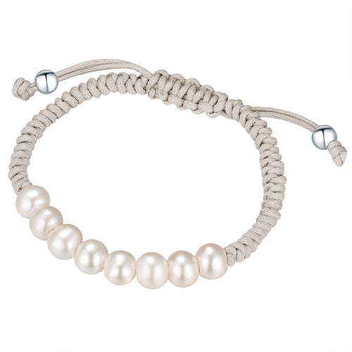 Armband Süßwasser-Zuchtperle weiß Textil (grau)