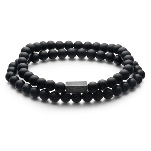 2er Set Armbänder Edelstahl gunmetal Lavastein schwarz