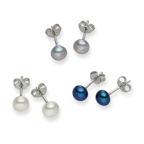3er Set Ohrstecker Sterling Silber Süßwasser-Zuchtperle multicolor