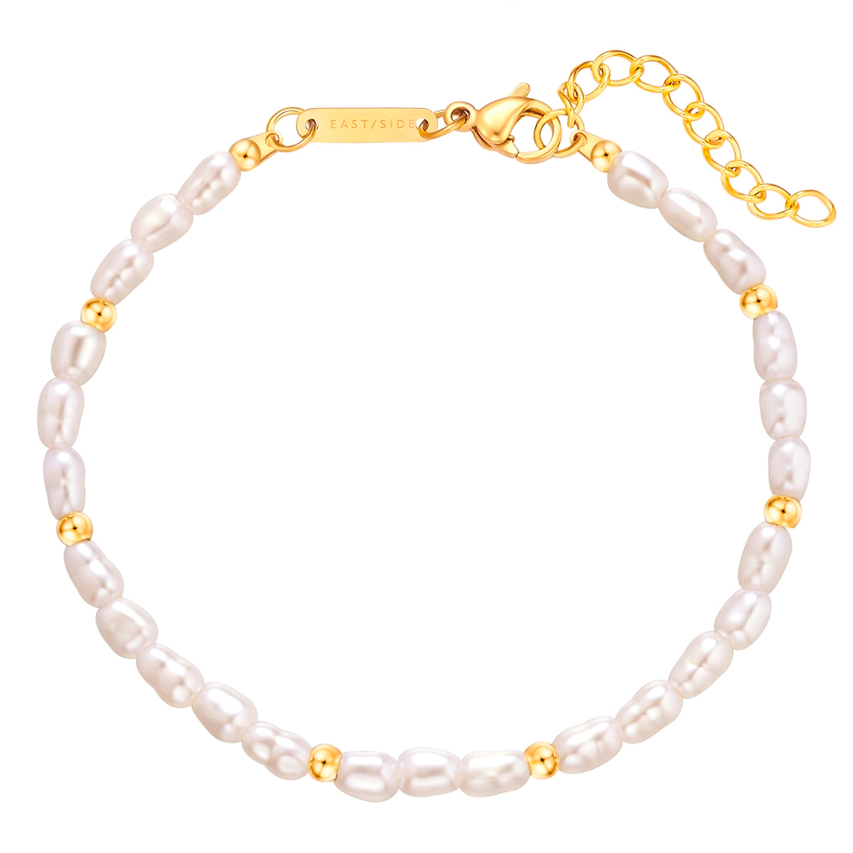 Armband Edelstahl gelbgold Perle (synth.) weiß