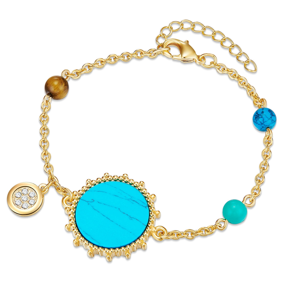 Armband gelbgold verziert mit Kristallen von Swarovski® weiß Tigerauge Türkis (rek.)