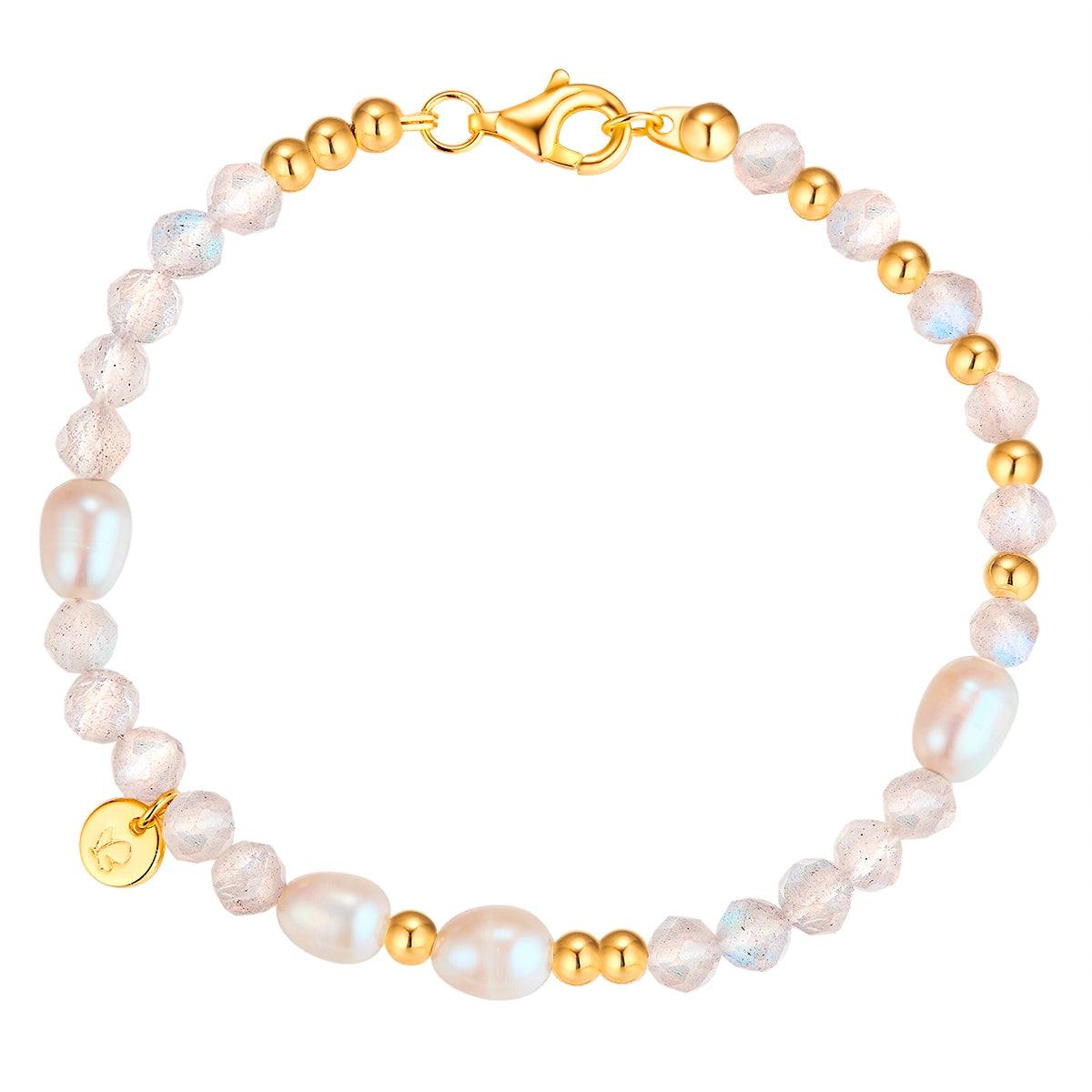 Armband Sterling Silber gelbgold Süßwasser-Zuchtperle weiß Labradorit blau