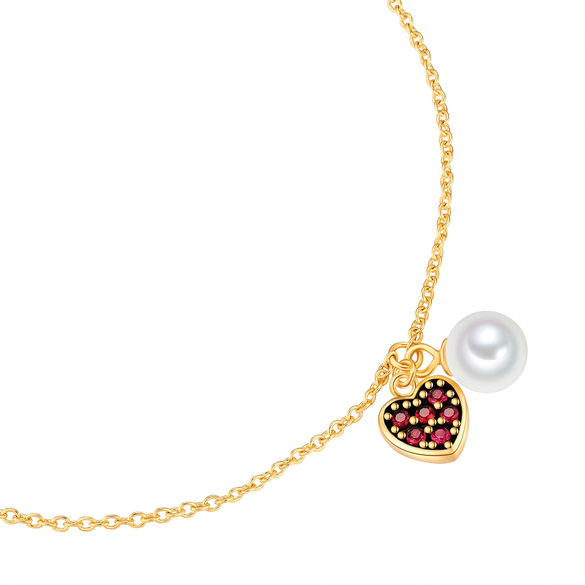Armband Sterling Silber gelbgold Süßwasser-Zuchtperle weiß Zirkonia rot