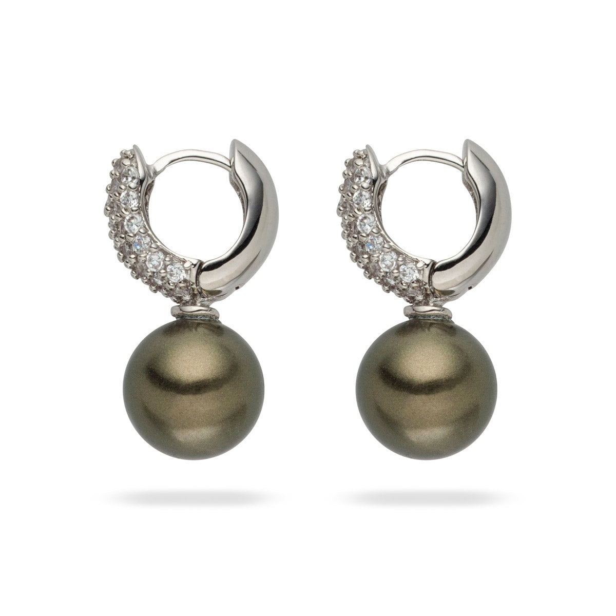 Creolen Muschelkernperle tahitigrün Zirkonia weiß