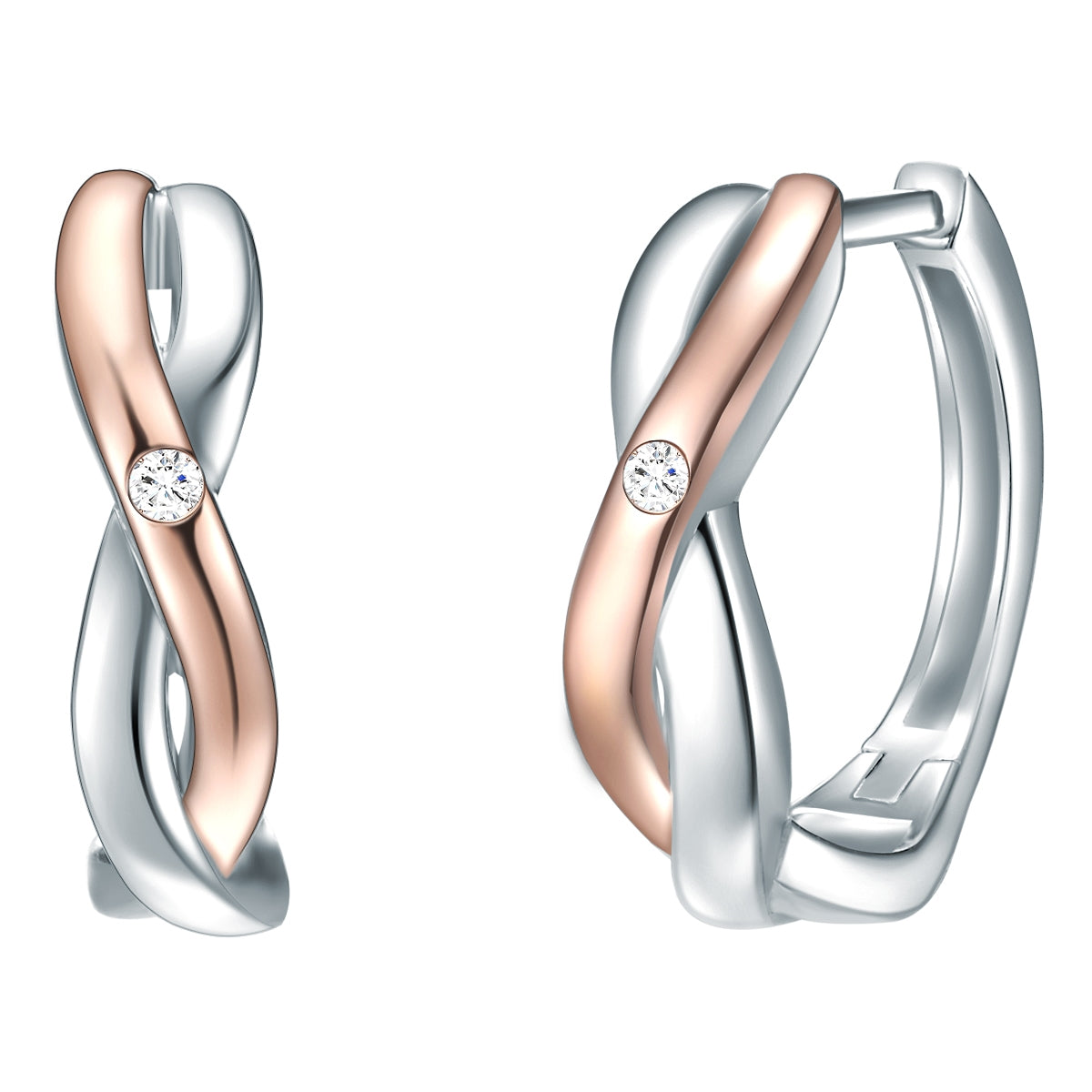 Creolen Sterling Silber bi-Color Diamant weiß