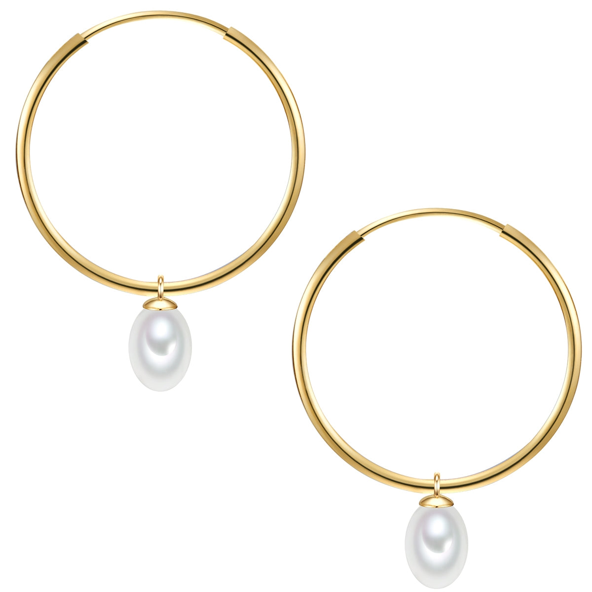 Creolen Sterling Silber gelbgold Süßwasser-Zuchtperle weiß