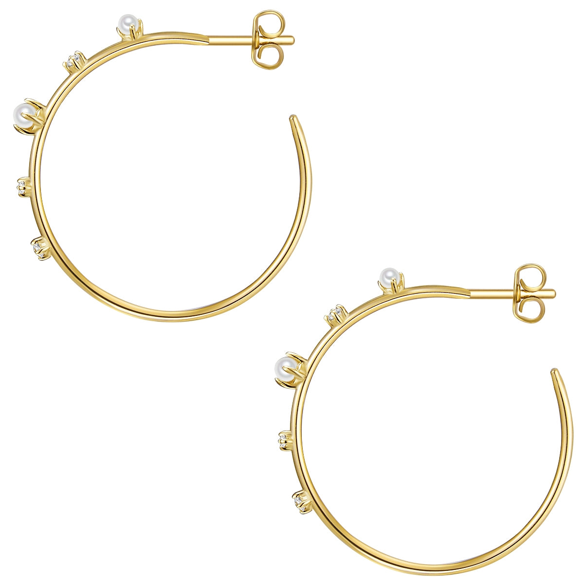 Creolen Sterling Silber gelbgold Süßwasser-Zuchtperle weiß Zirkonia weiß