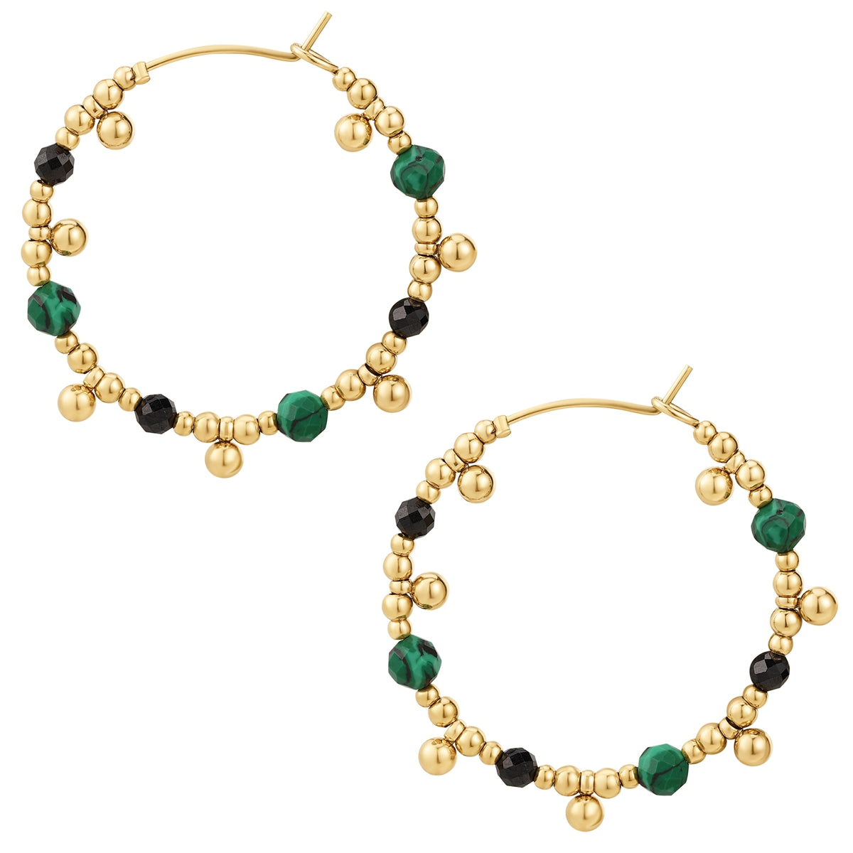 Creolen Edelstahl gelbgold Spinell schwarz Malachit grün
