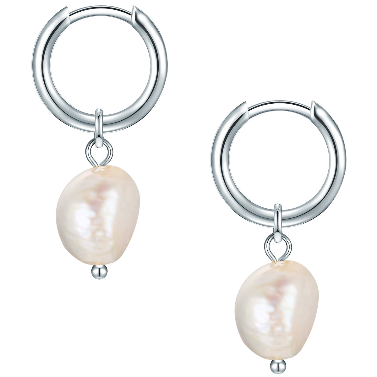 Creolen Edelstahl Süßwasser-Zuchtperle weiß