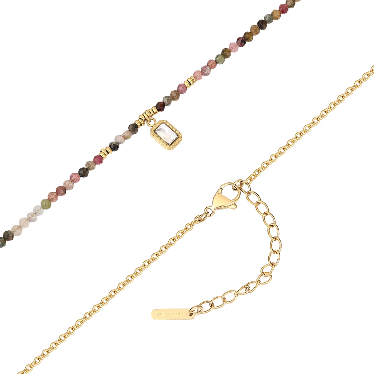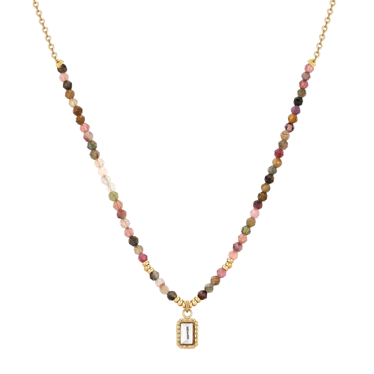 Kette mit Anhänger Edelstahl gelbgold Zirkonia weiß Turmalin multicolor