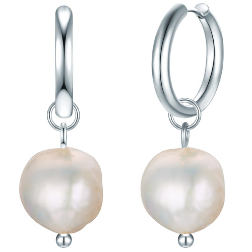 Creolen Edelstahl Süßwasser-Zuchtperle weiß