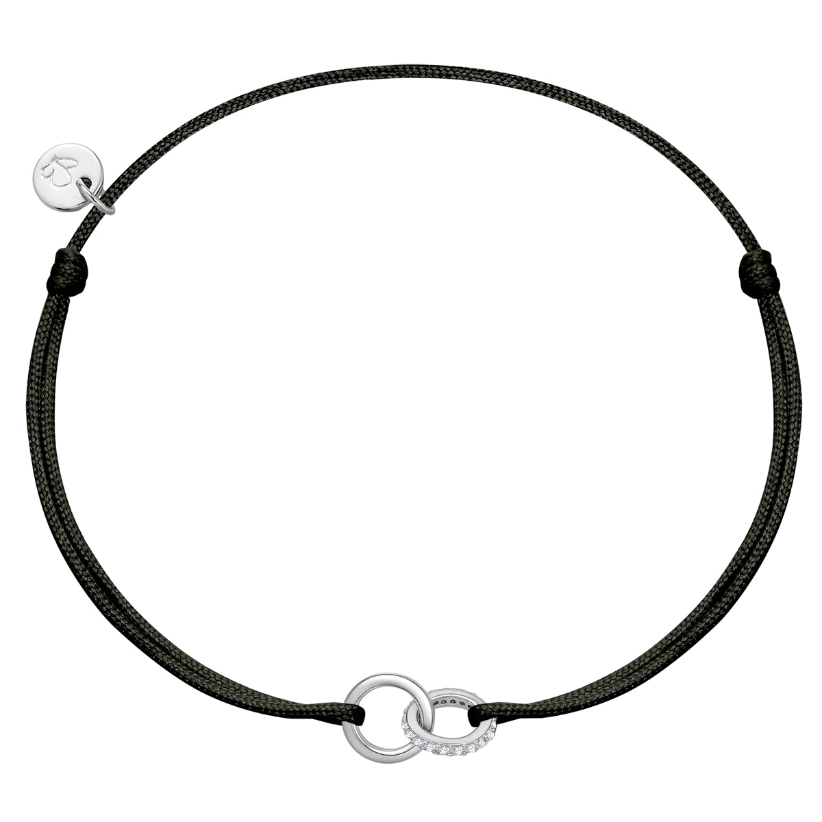 Armband Sterling Silber Textil (schwarz) Zirkonia weiß