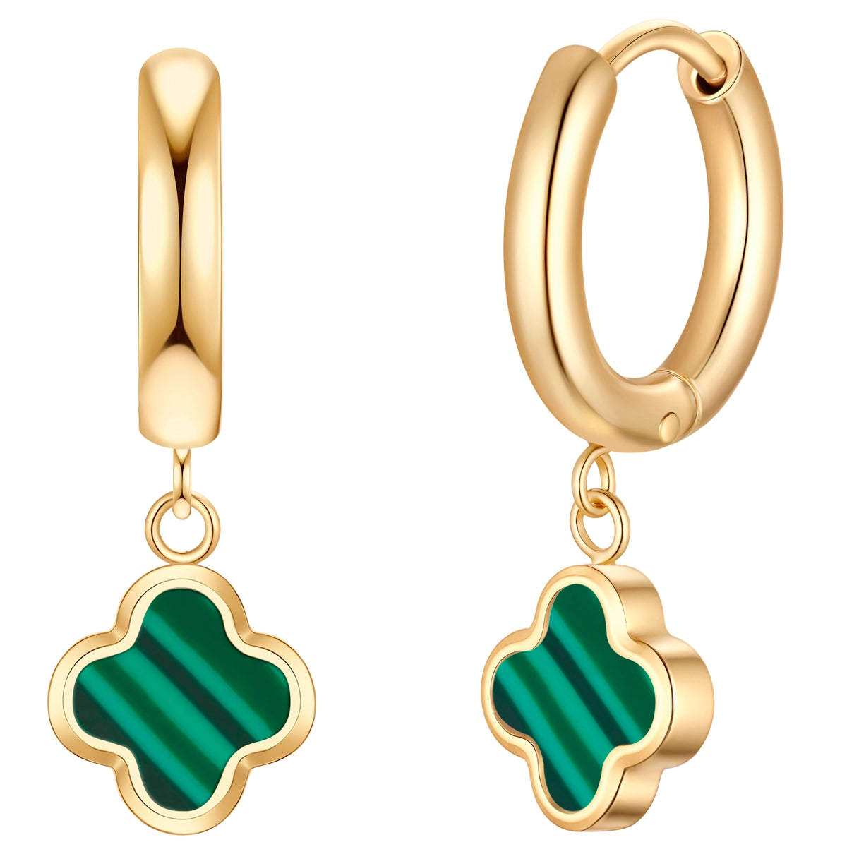 Creolen Edelstahl gelbgold Malachit (synth.) grün