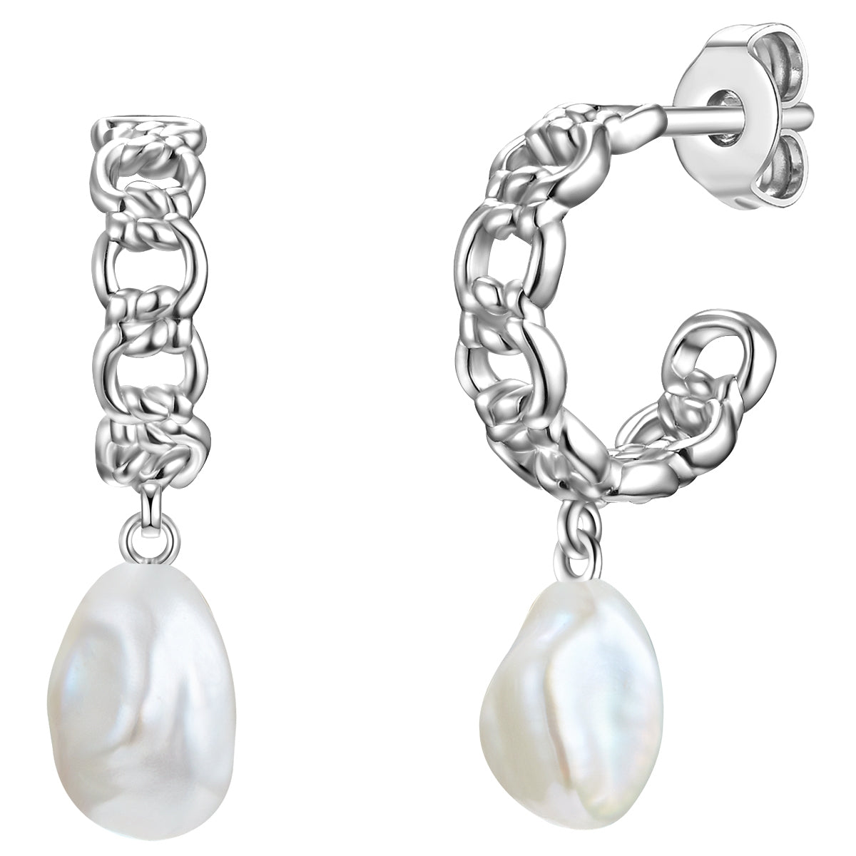 Creolen Sterling Silber Süßwasser-Zuchtperle weiß