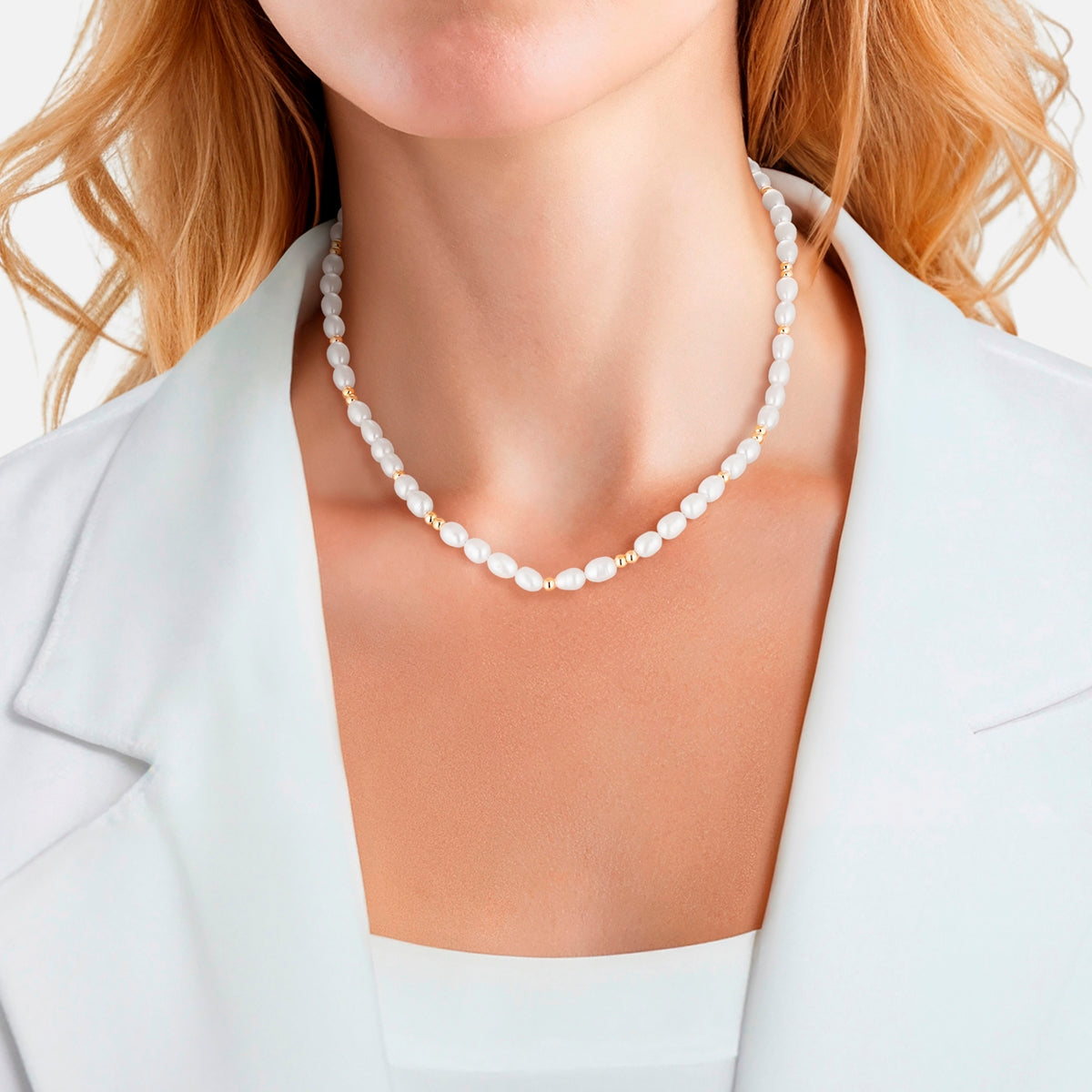 Kette Sterling Silber gelbgold Süßwasser-Zuchtperle weiß