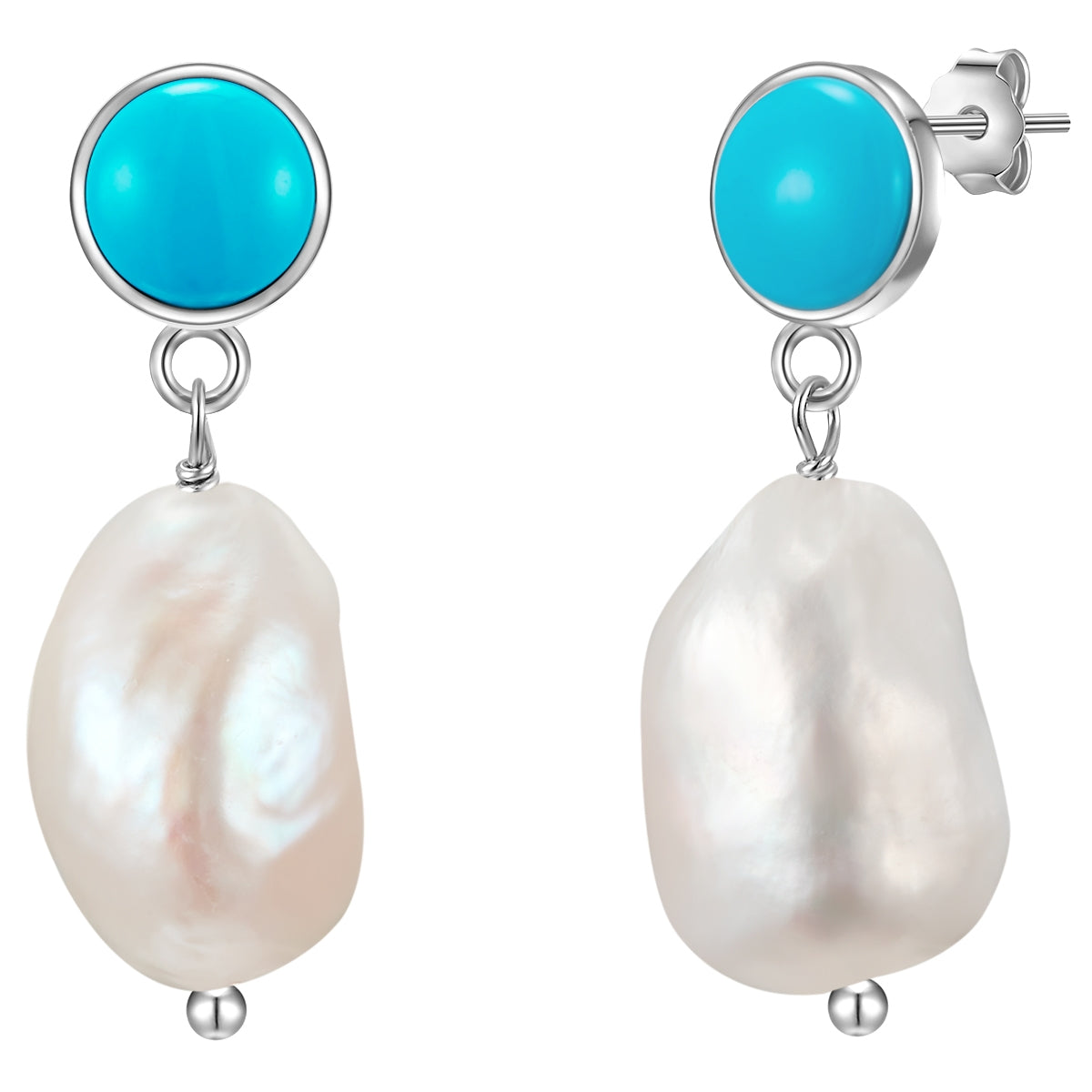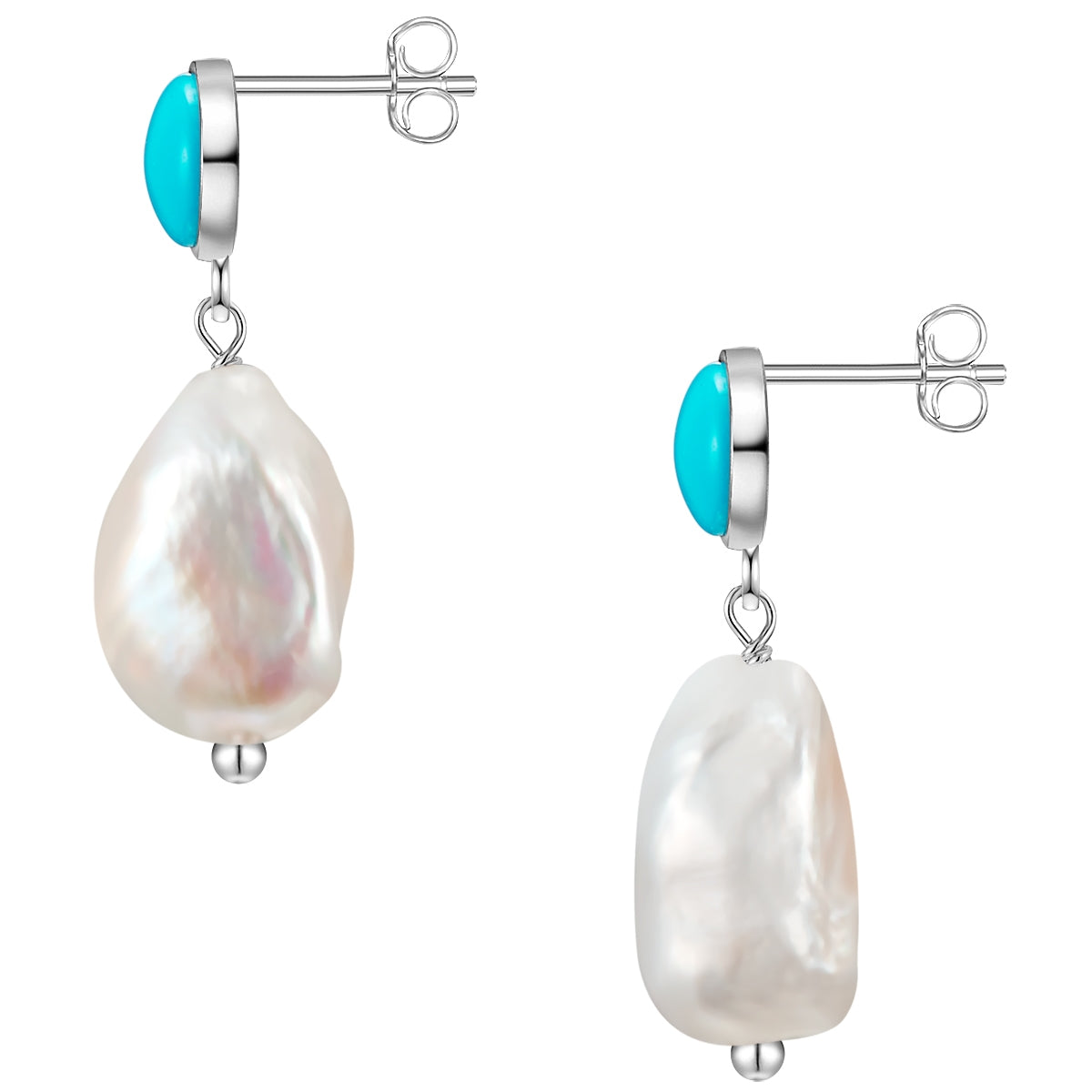Ohrhänger Sterling Silber Süßwasser-Zuchtperle weiß Türkis (rek.)