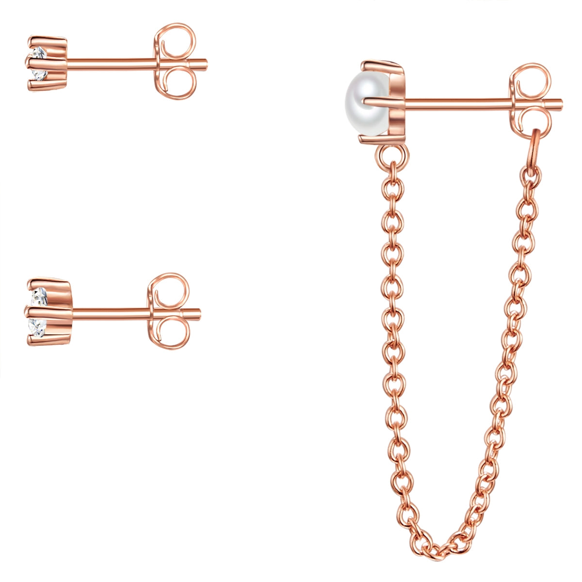 Ohrstecker Sterling Silber roségold Süßwasser-Zuchtperle weiß Zirkonia weiß