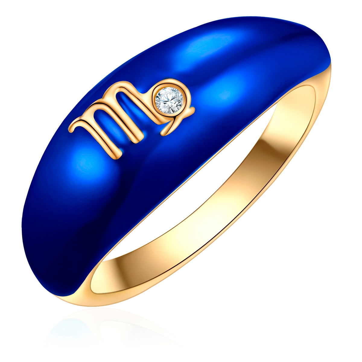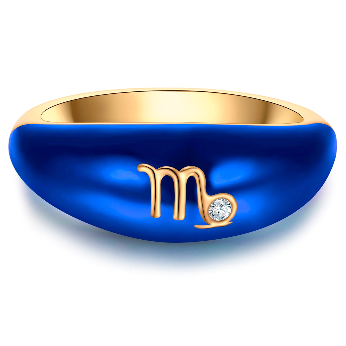 Ring Sterling Silber gelbgold Zirkonia weiß Emaille blau