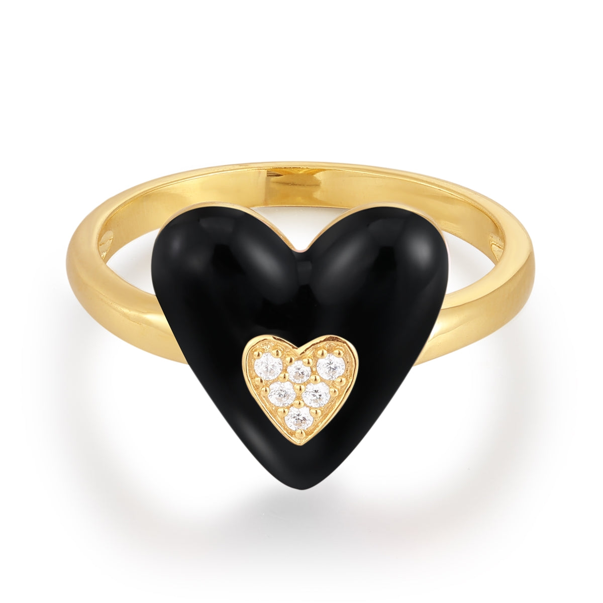 Ring Sterling Silber gelbgold Zirkonia weiß Emaille schwarz
