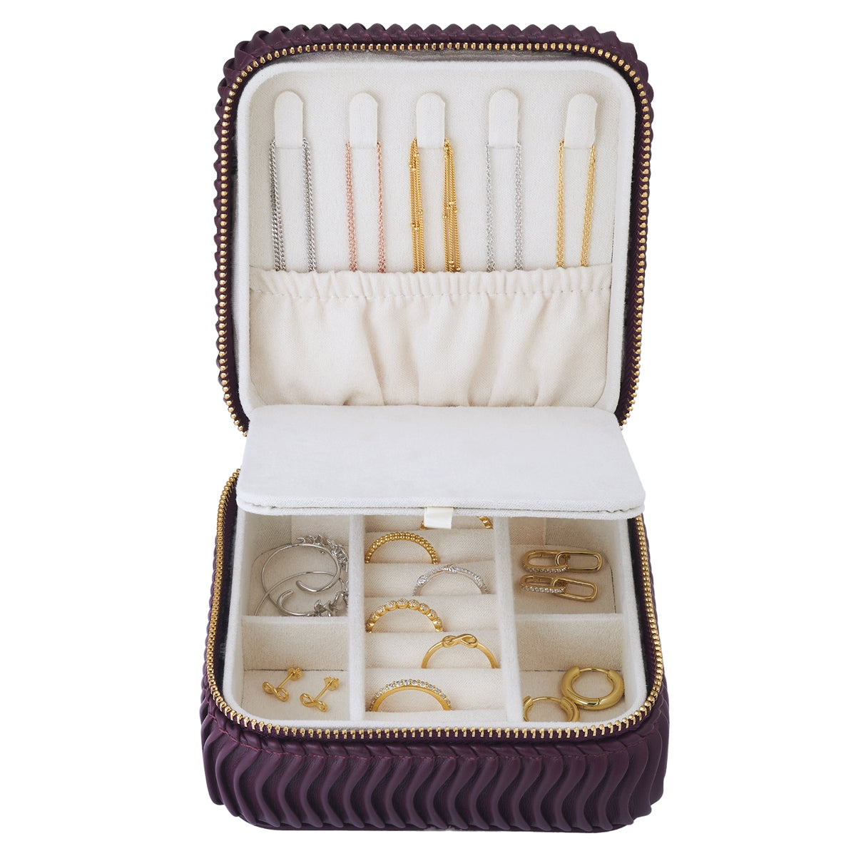 Schmuck-Reisetäschchen Kunstleder bordeaux 115x115x58 mm