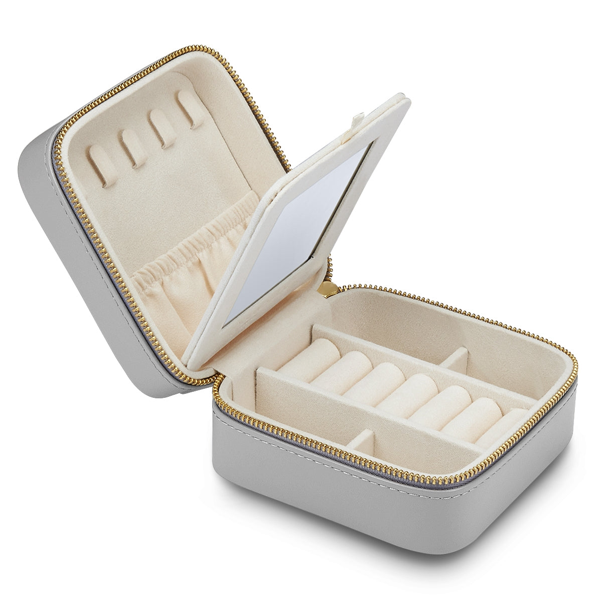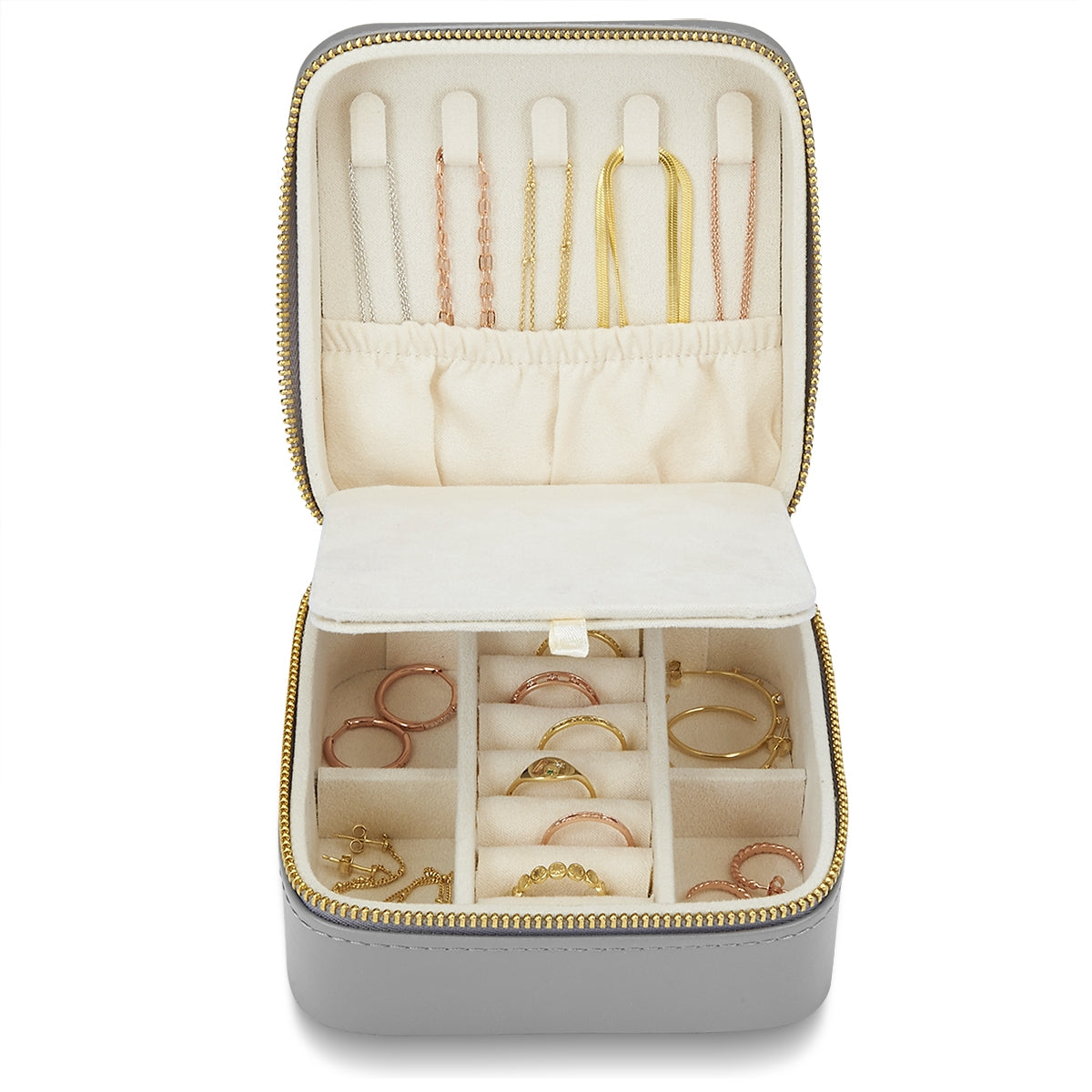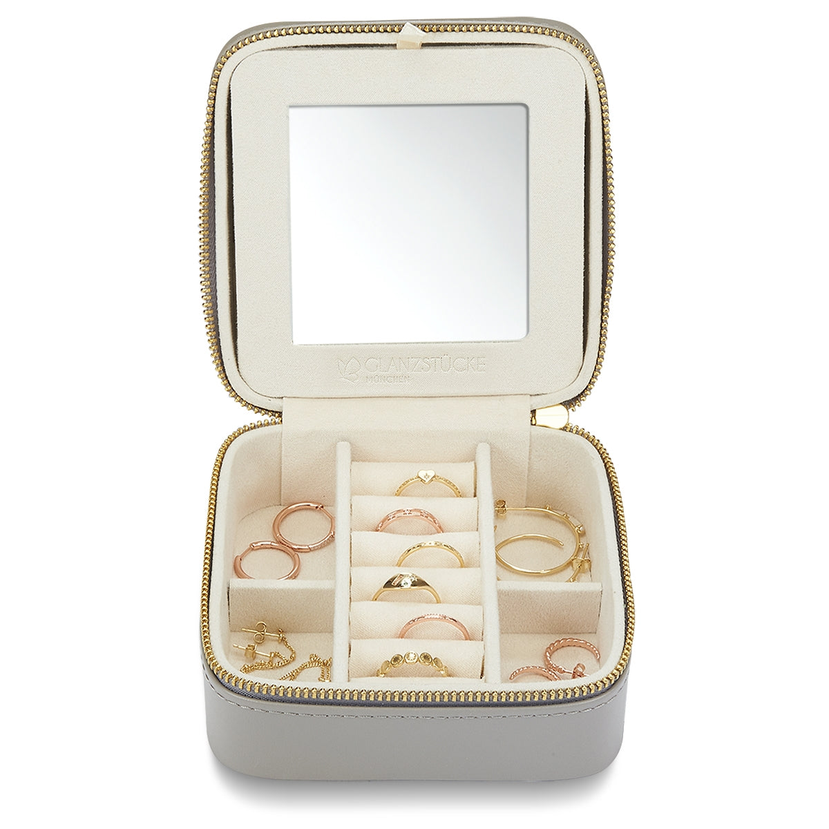 Schmuck-Reisetäschchen Kunstleder grau 115x115x58 mm
