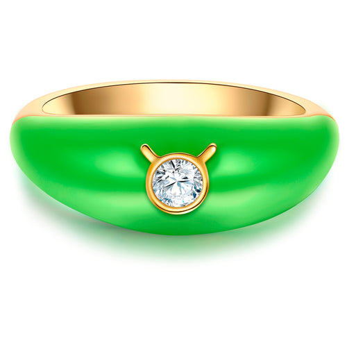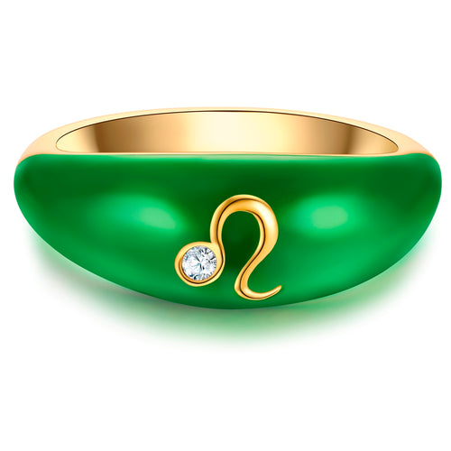 Ring Sterling Silber gelbgold Zirkonia weiß Emaille grün