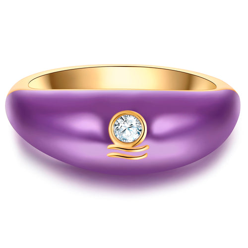 Ring Sterling Silber gelbgold Zirkonia weiß Emaille lila
