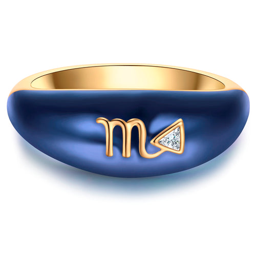 Ring Sterling Silber gelbgold Zirkonia weiß Emaille blau
