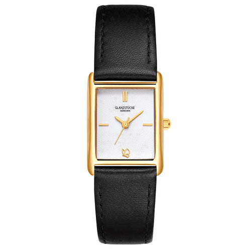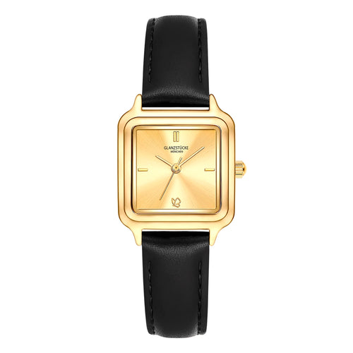 Damen Quarzuhr gelbgold Echtleder schwarz