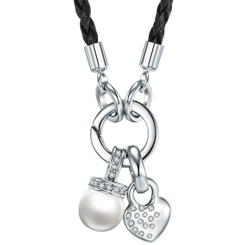 Kette Edelstahl schwarz Perle (synth.) weiß