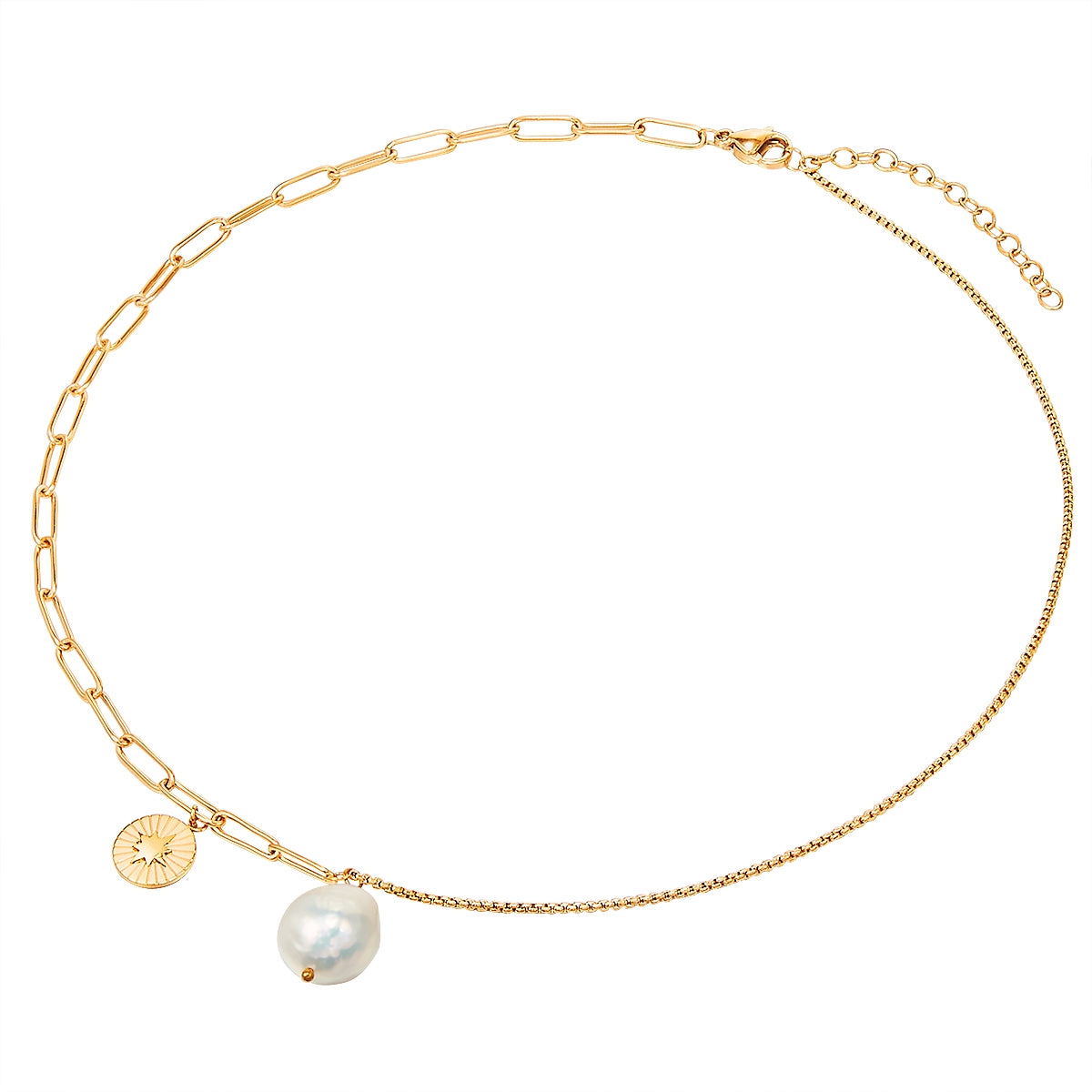 Kette Edelstahl gelbgold Süßwasser-Zuchtperle weiß