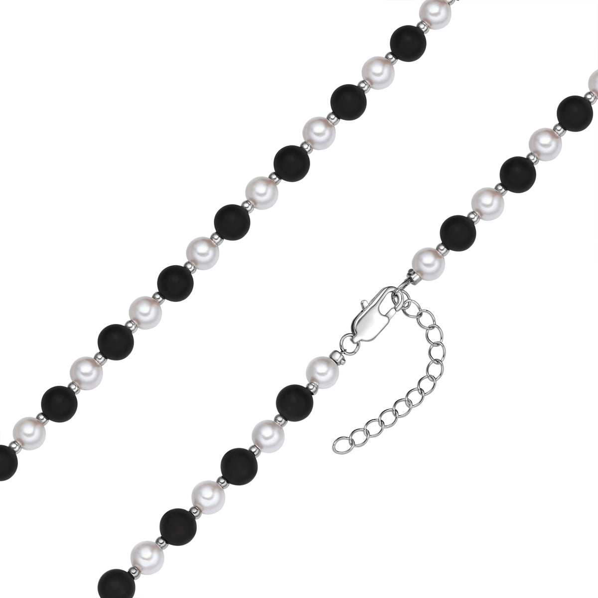 Kette Edelstahl Muschelkernperle weiß Onyx schwarz