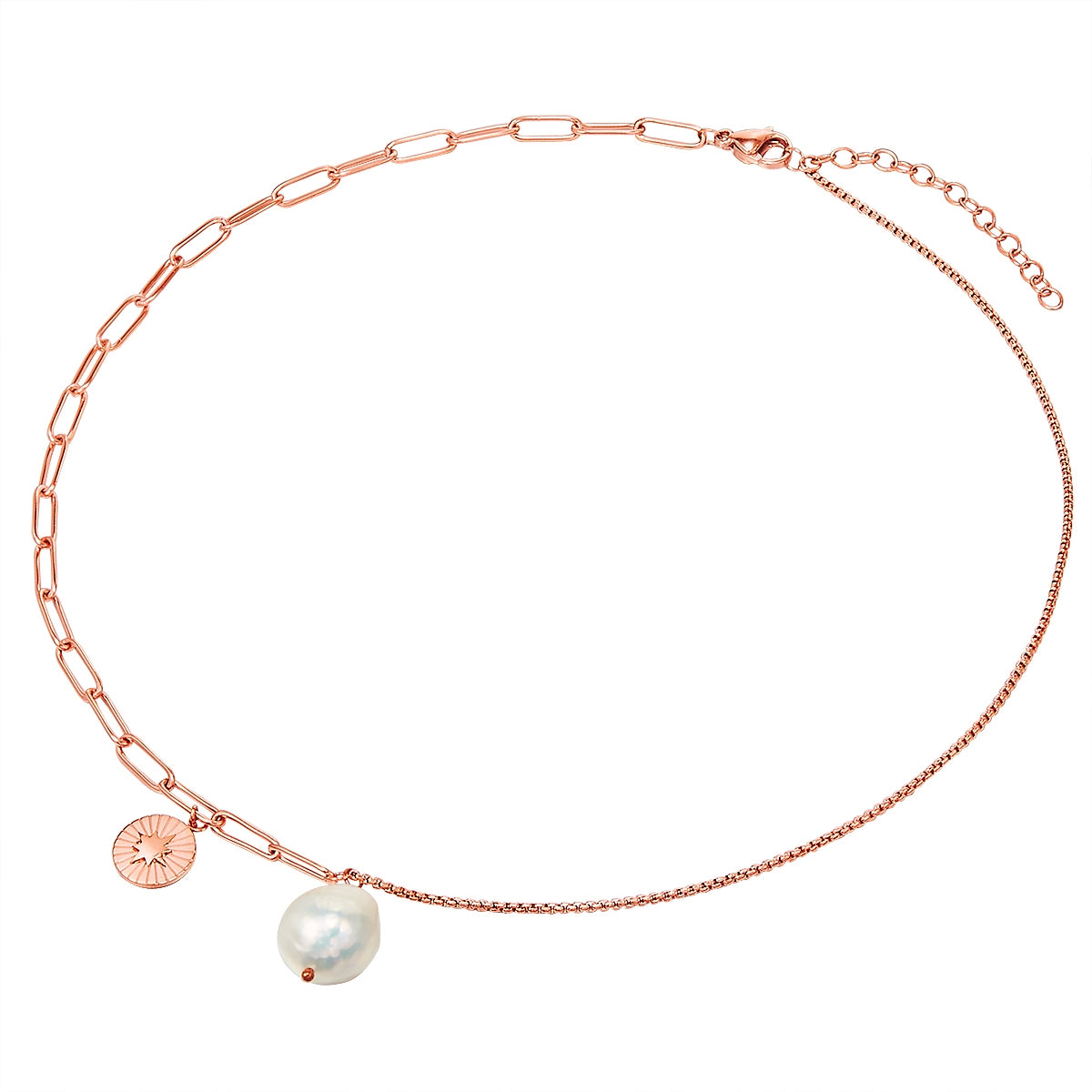 Kette Edelstahl roségold Süßwasser-Zuchtperle weiß