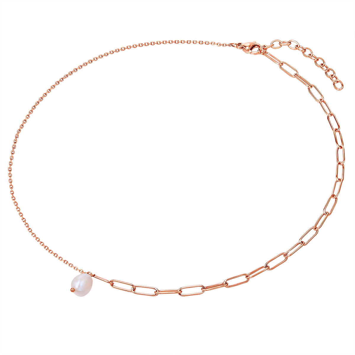 Kette Edelstahl roségold Süßwasser-Zuchtperle weiß