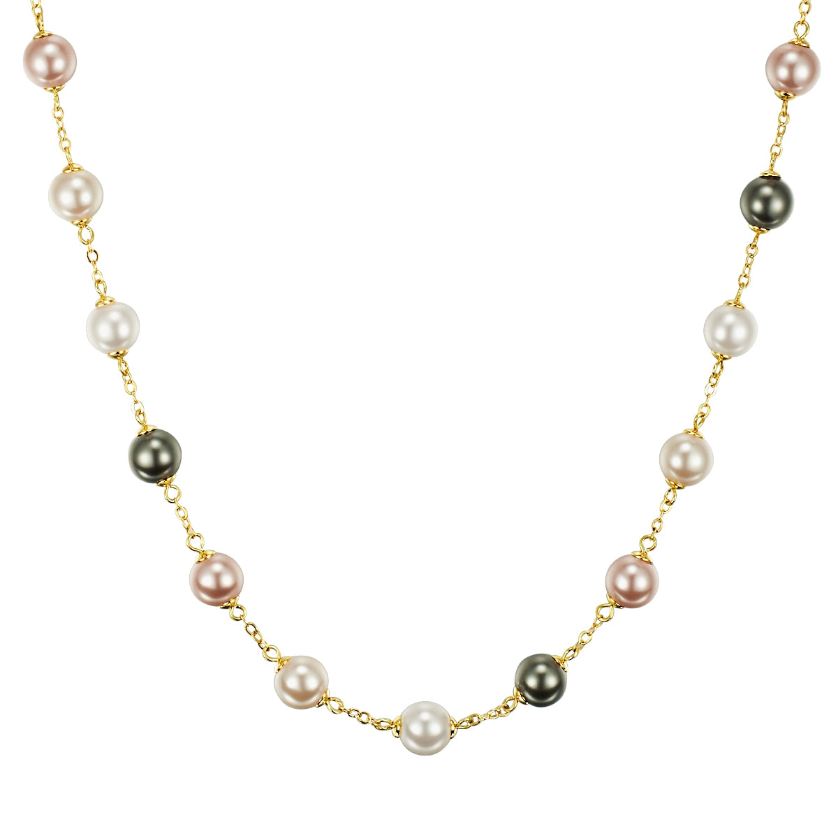Kette gelbvergoldet synthetische Perle weiss grau cremeweiß apricot