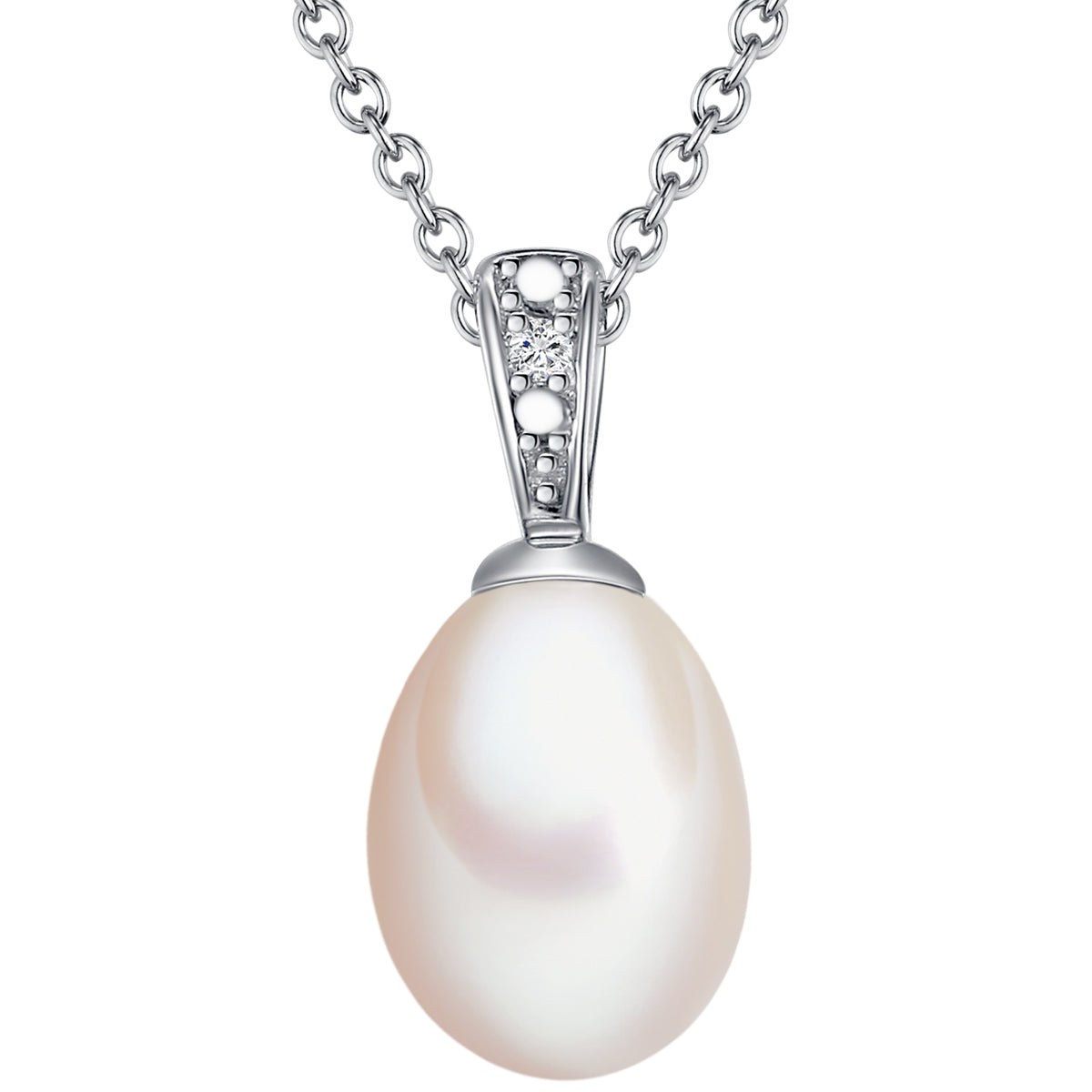 Kette mit Anhänger Sterling Silber Diamant Süßwasser-Zuchtperle weiß