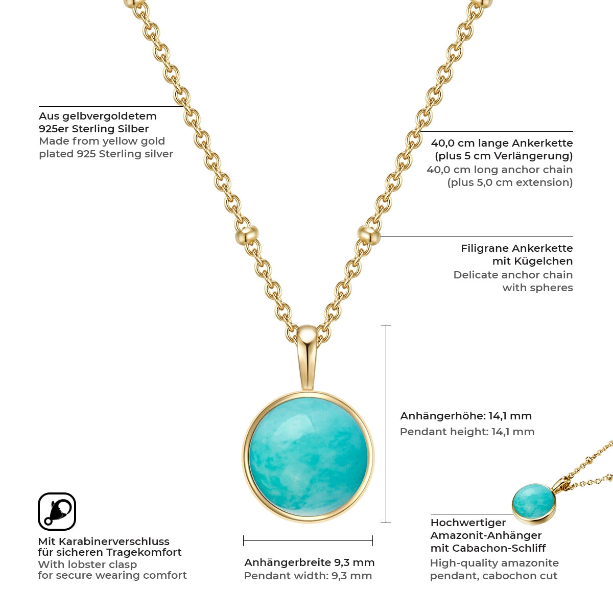 Kette mit Anhänger Sterling Silber gelbgold Amazonit