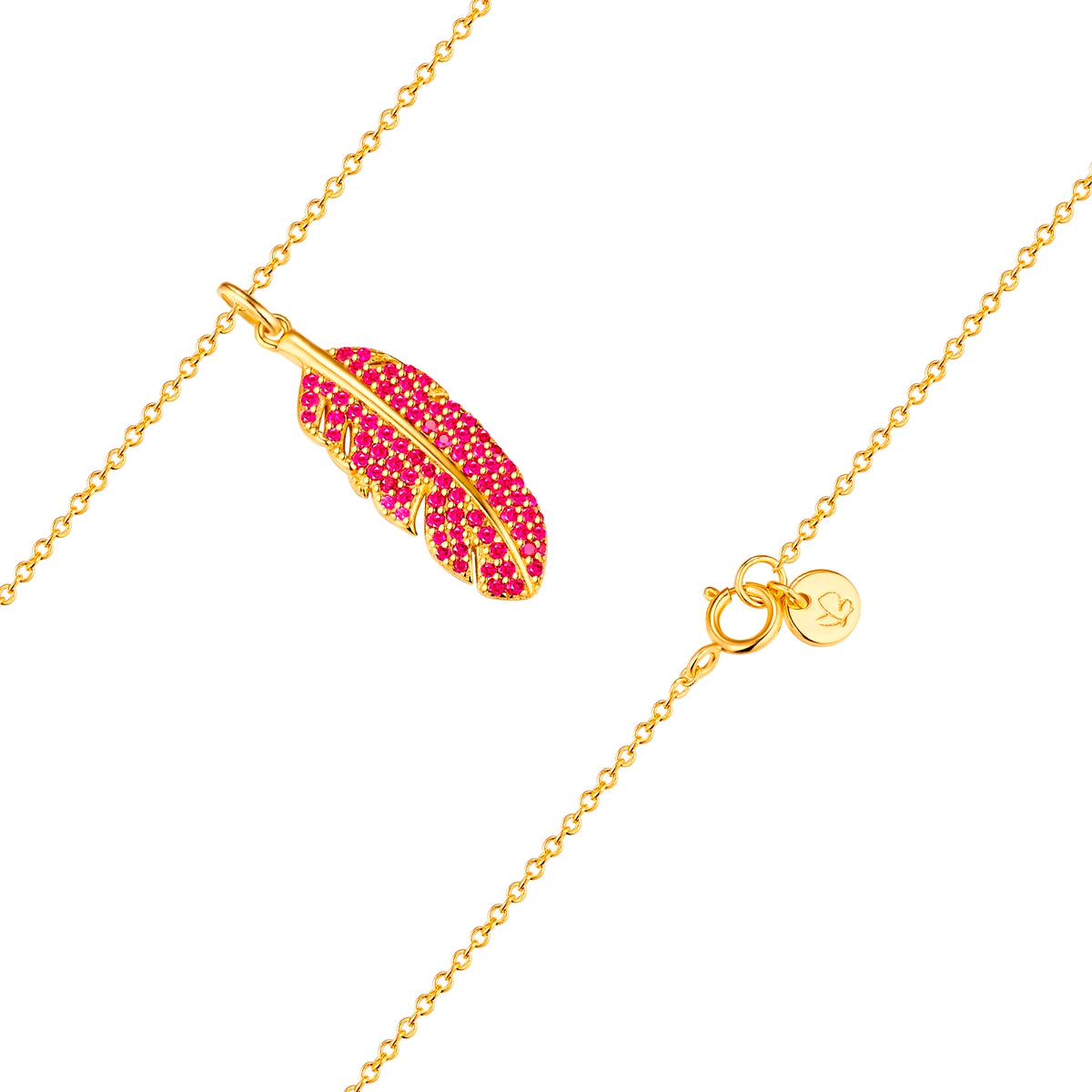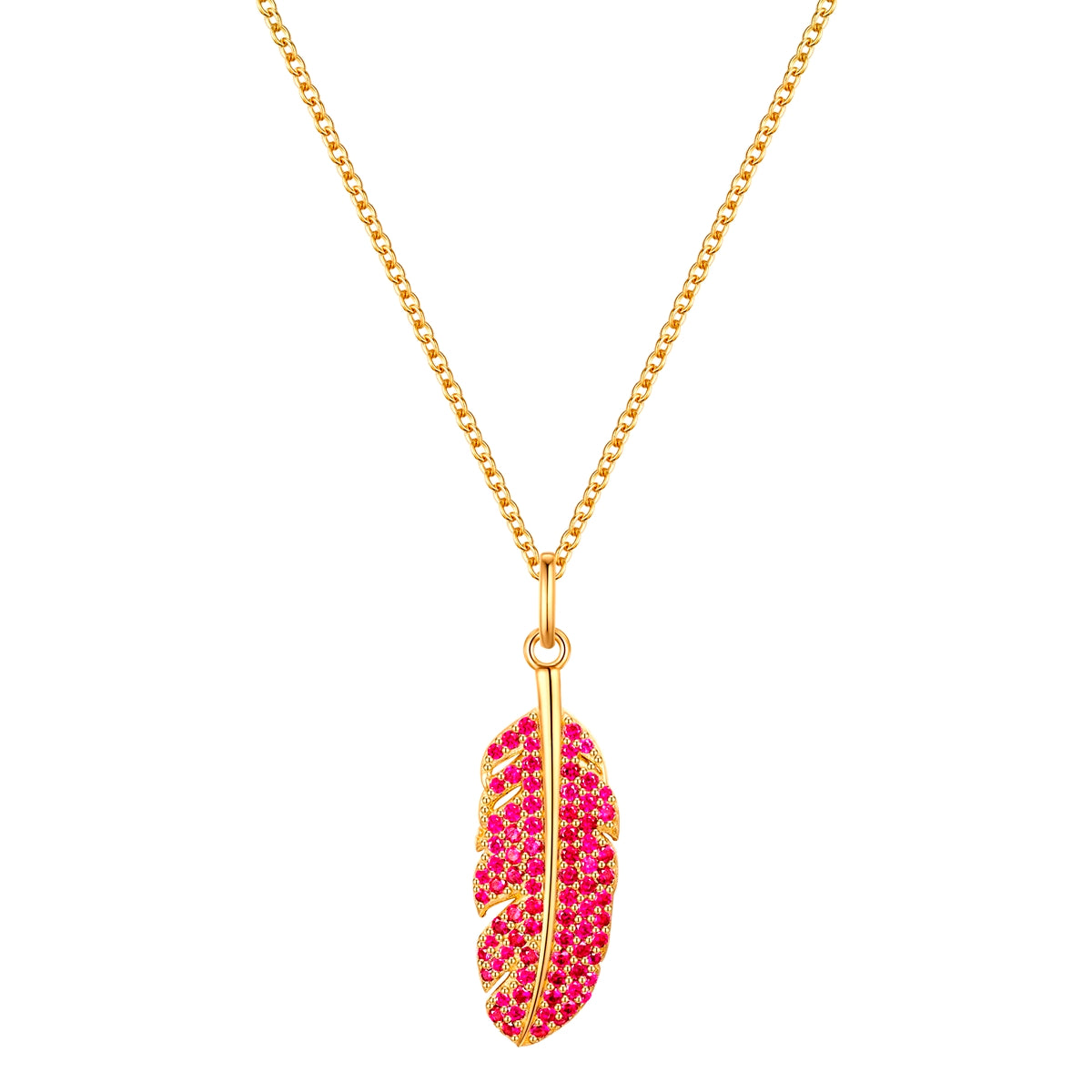 Kette mit Anhänger Sterling Silber gelbgold Korund(synth.) rot