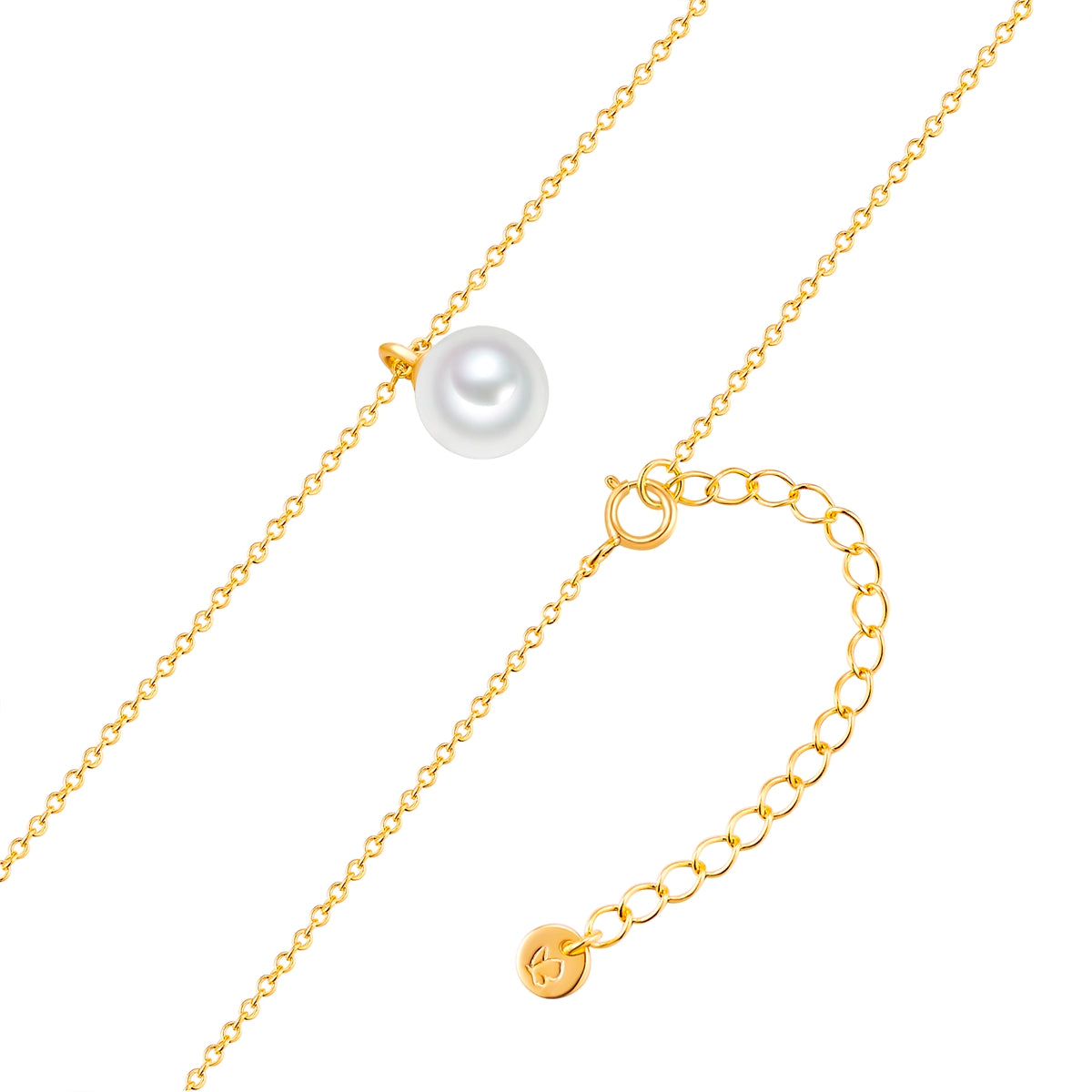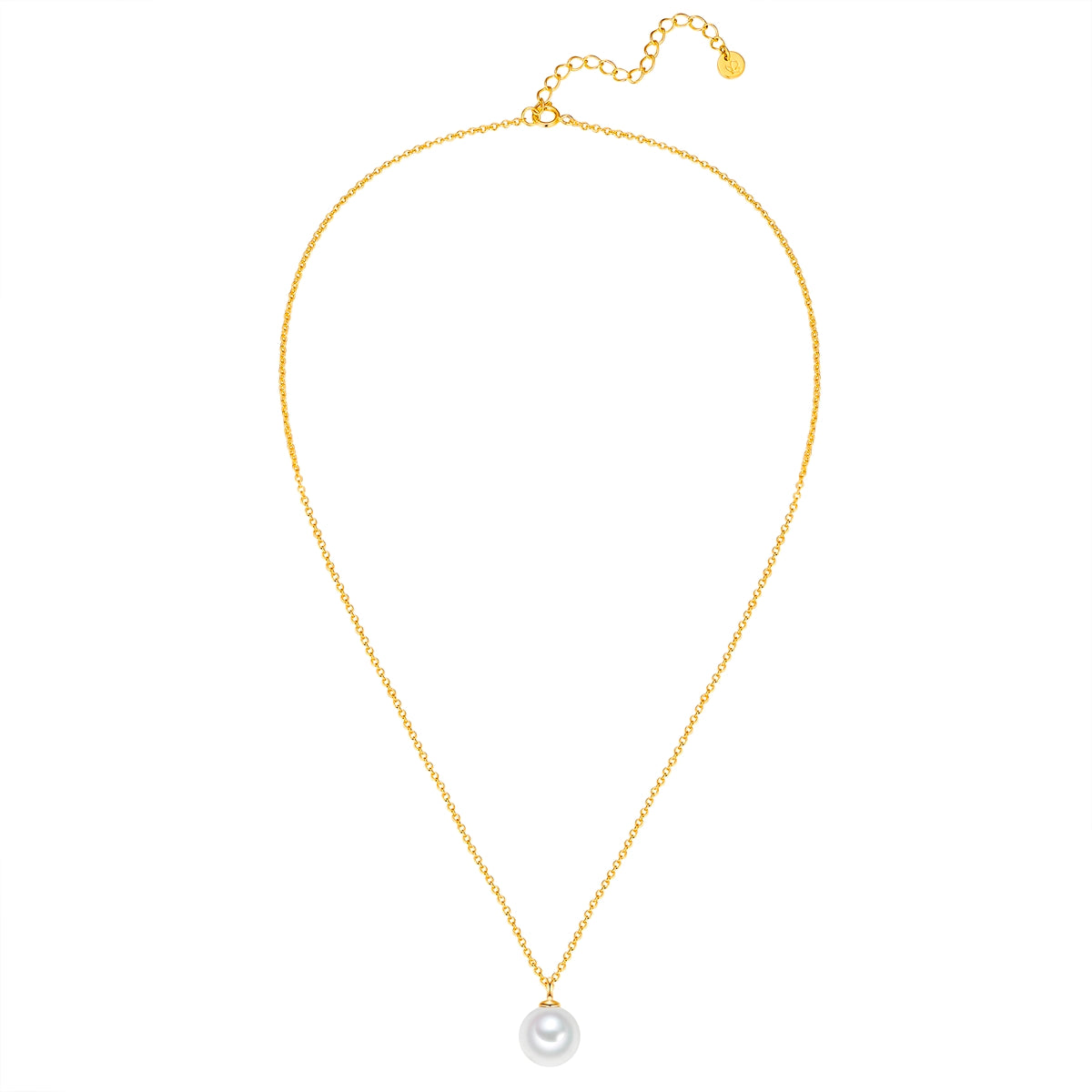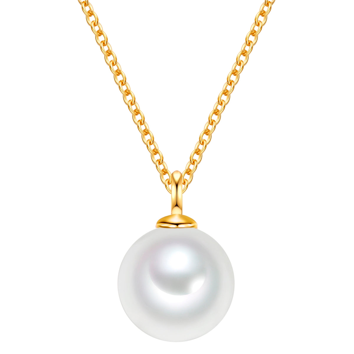 Kette mit Anhänger Sterling Silber gelbgold Muschelkernperlen weiß