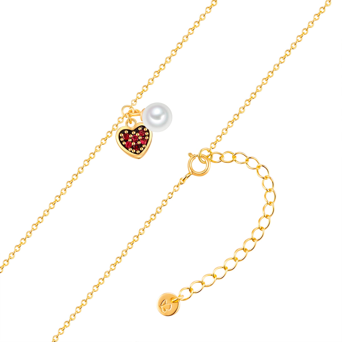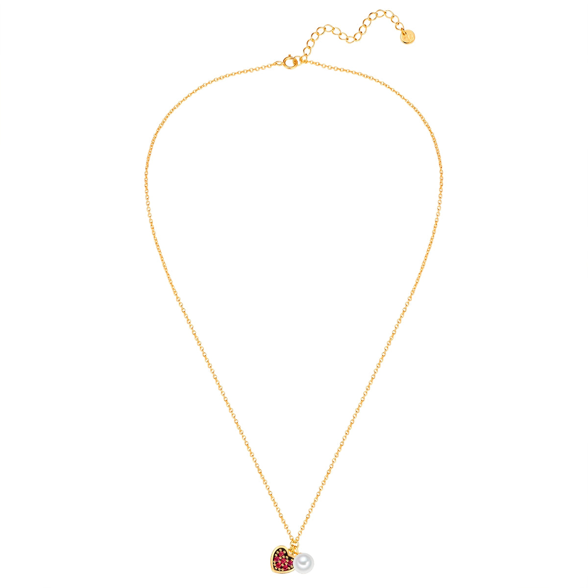 Kette mit Anhänger Sterling Silber gelbgold Süßwasser-Zuchtperle weiß Zirkonia rot