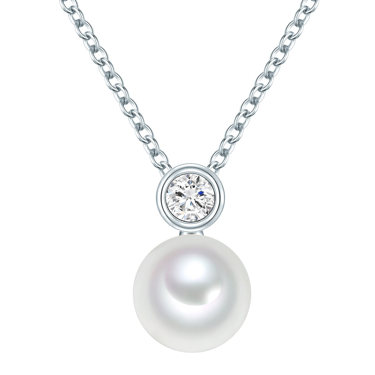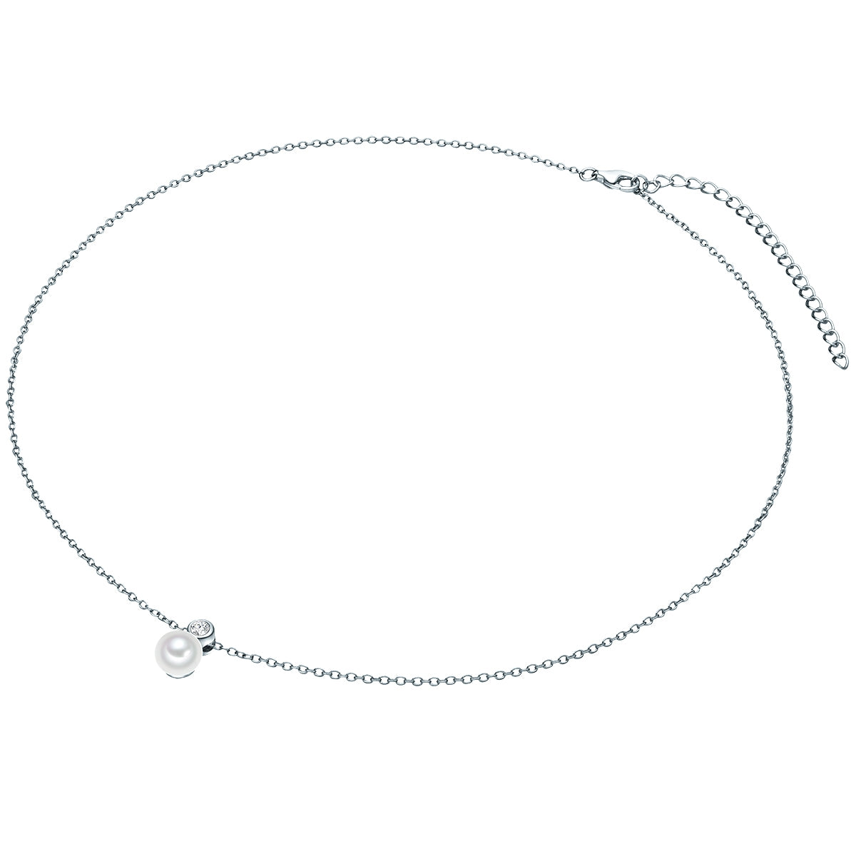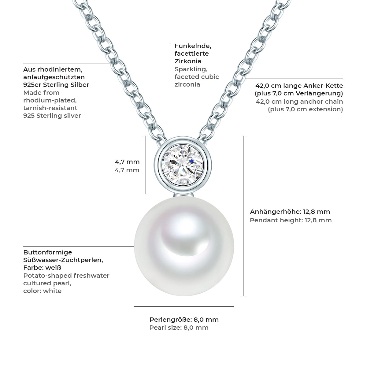 Kette mit Anhänger Sterling Silber Süßwasser-Zuchtperle weiß Zirkonia weiß