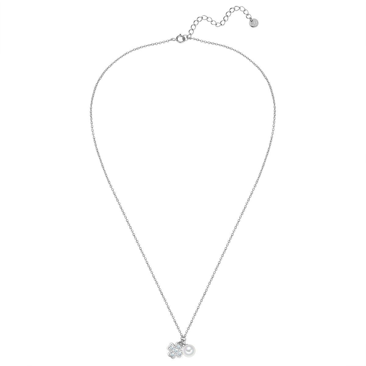 Kette mit Anhänger Sterling Silber Süßwasser-Zuchtperle weiß Zirkonia weiß