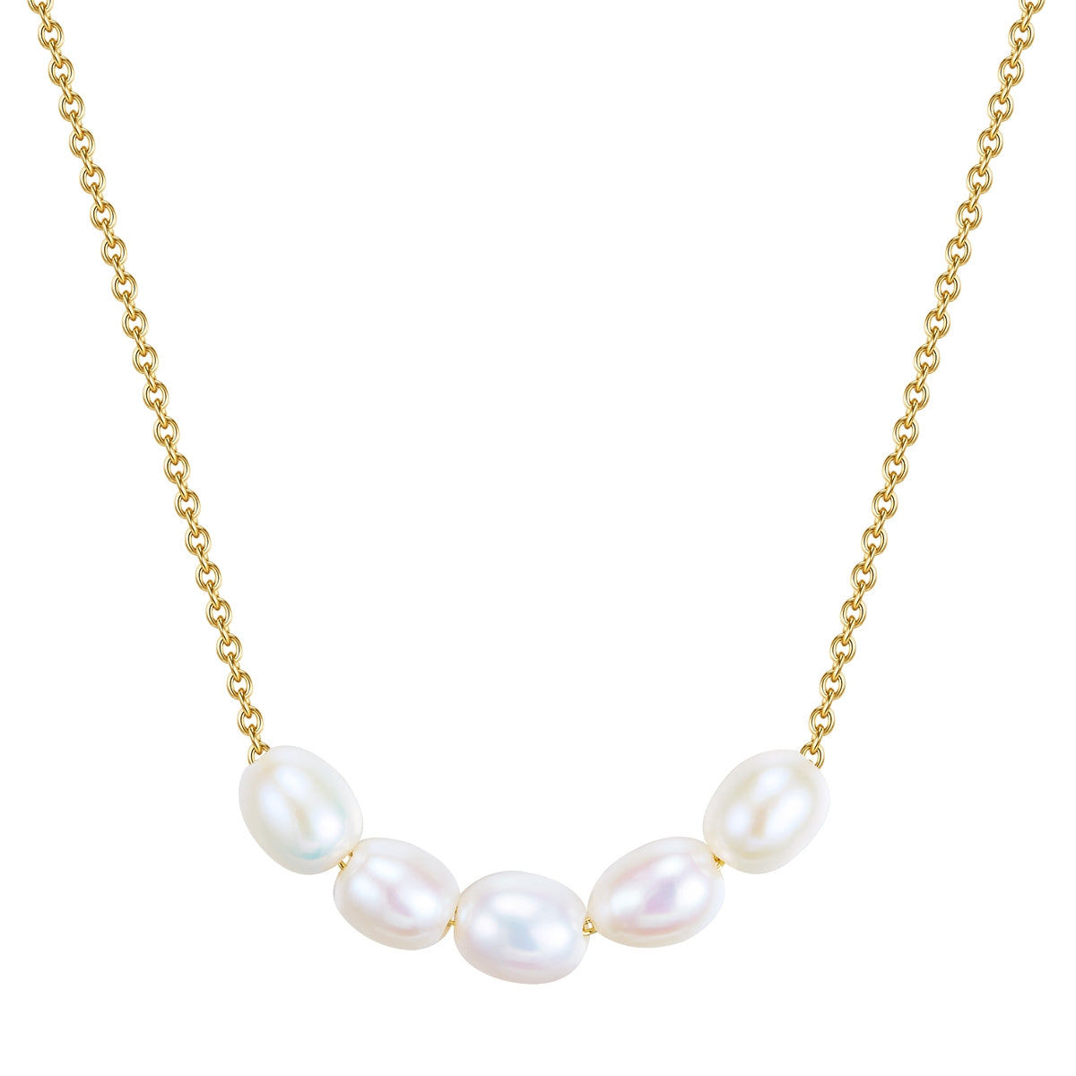 Kette Sterling Silber gelbgold Süßwasser-Zuchtperle weiß