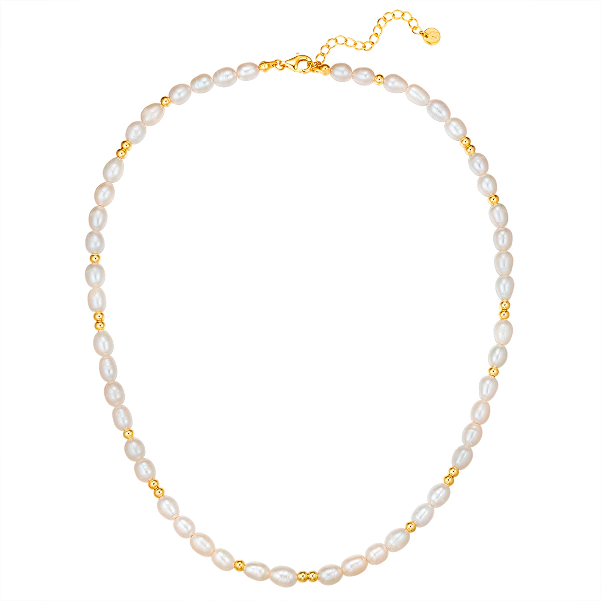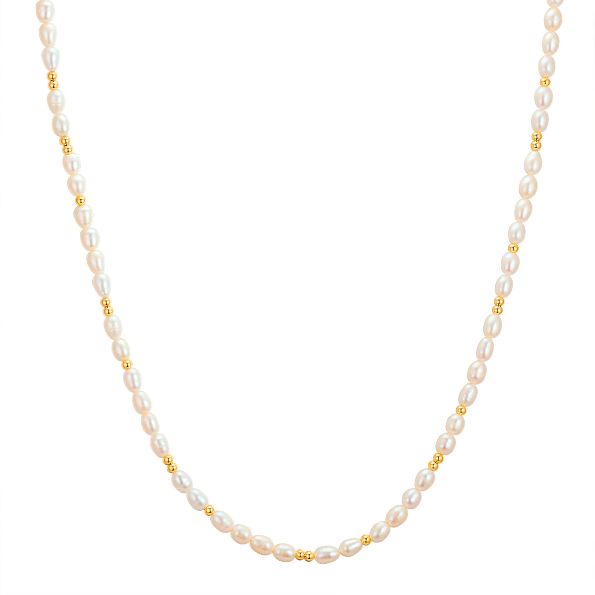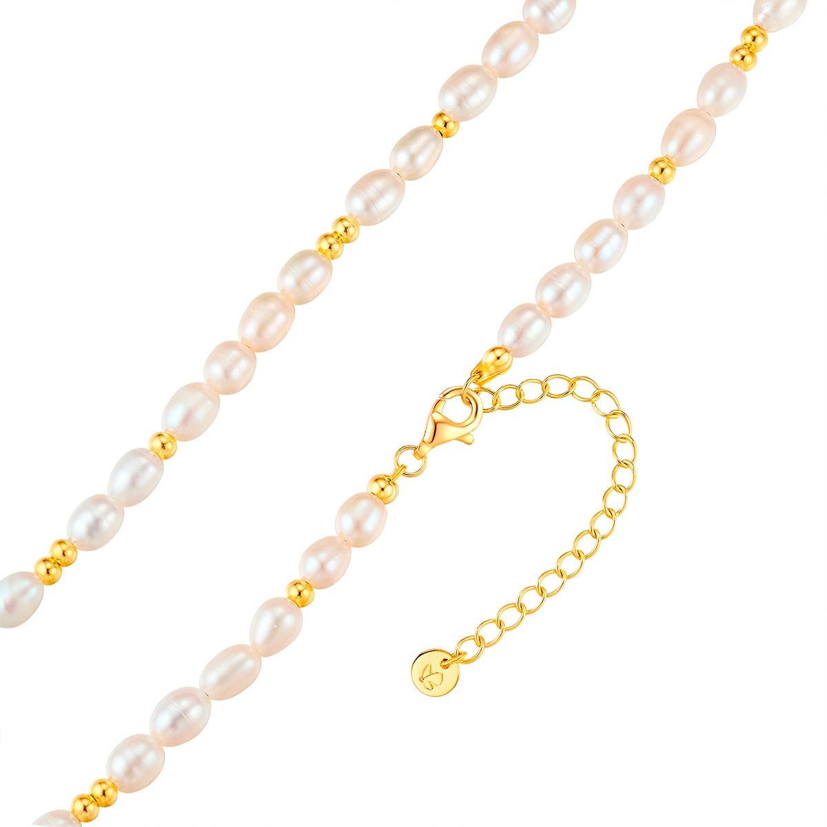 Kette Sterling Silber gelbgold Süßwasser-Zuchtperle weiß