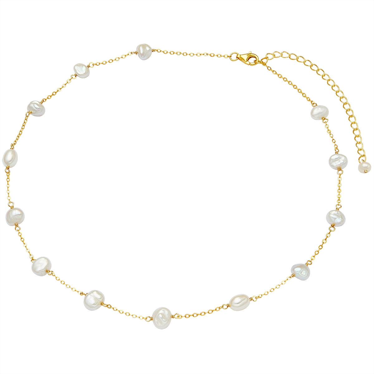 Kette Sterling Silber gelbgold Süßwasser-Zuchtperlen weiß