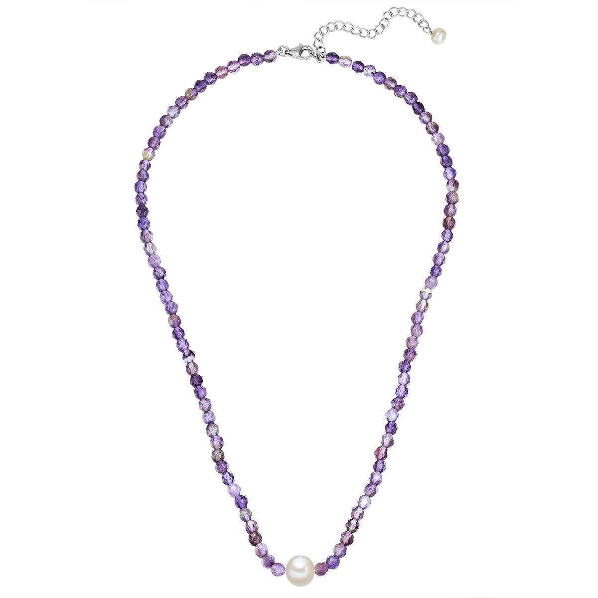 Kette Sterling Silber Süßwasser-Zuchtperle weiß Amethyst lila