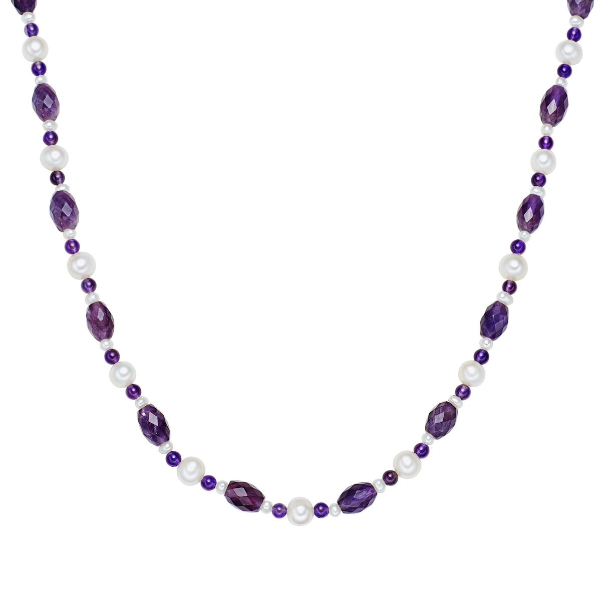 Kette Süßwasser-Zuchtperle weiß Amethyst