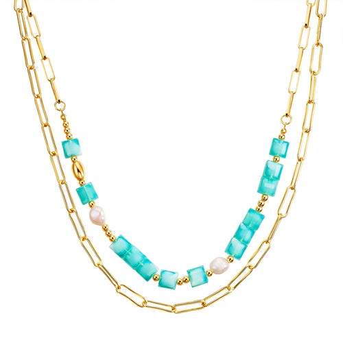 Kette gelbgold Süßwasser-Zuchtperle weiß Marmor multicolor