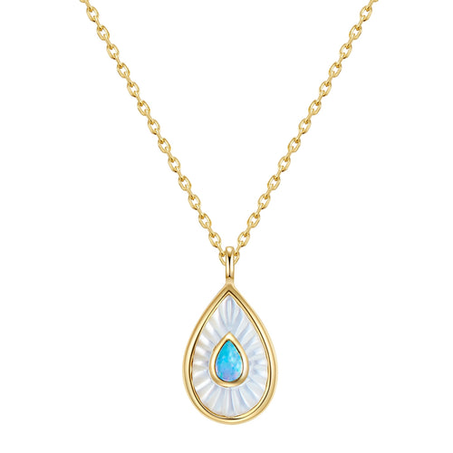 Kette mit Anhänger Sterling Silber gelbgold Perlmutt Opal (synth.) weiß